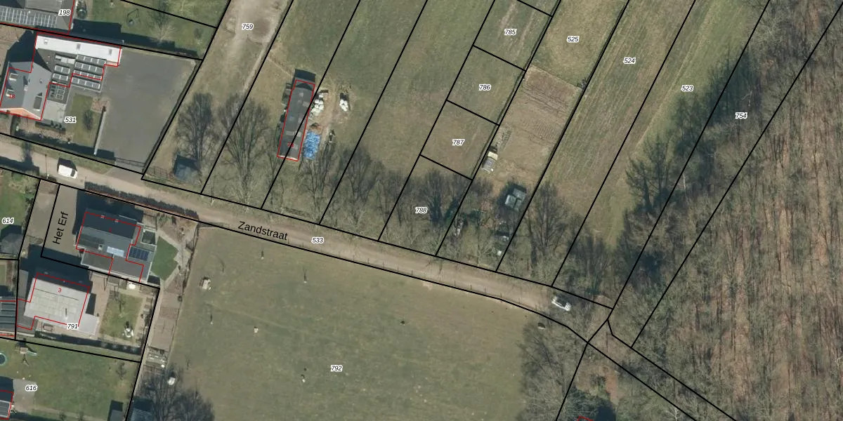 Gebruik de zoekbalk of klik op een perceel om informatie over het perceel te bekijken.