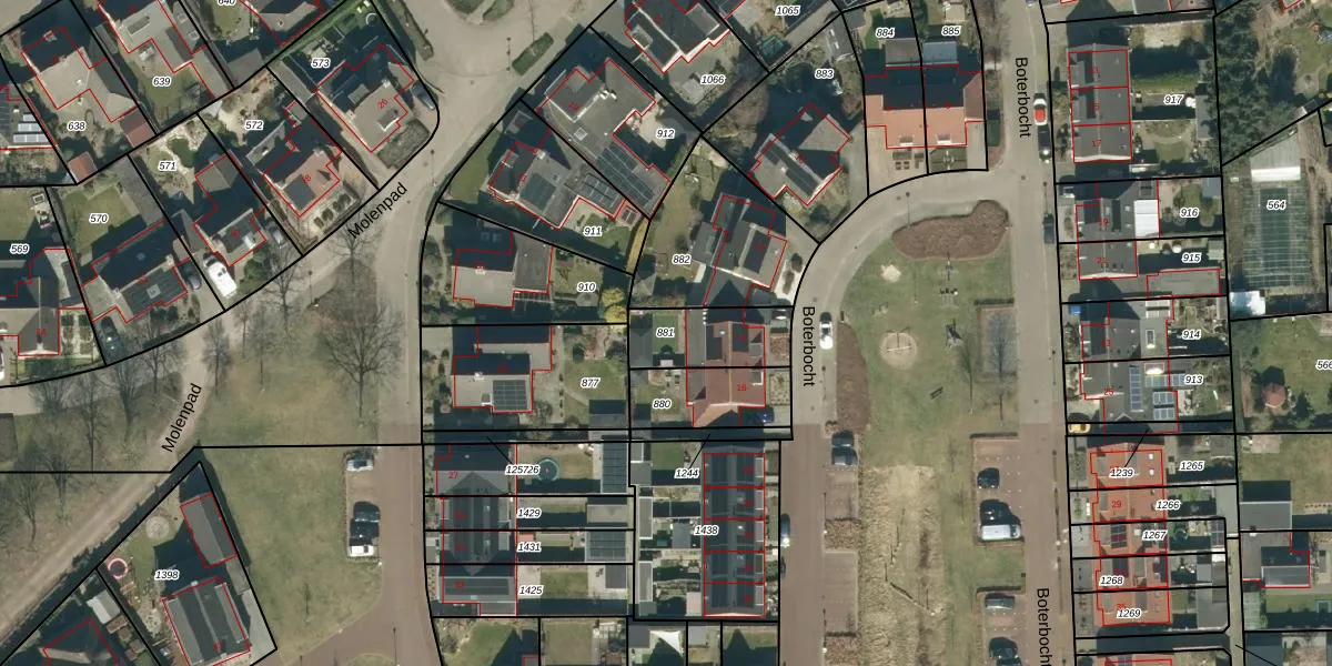 Gebruik de zoekbalk of klik op een perceel om informatie over het perceel te bekijken.