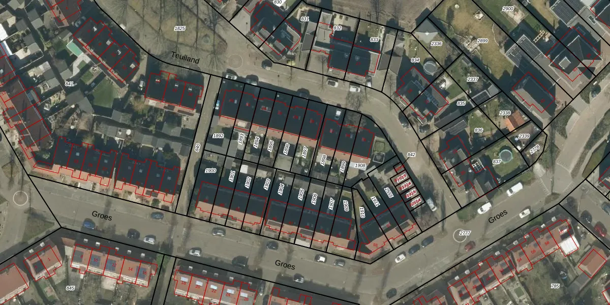 Gebruik de zoekbalk of klik op een perceel om informatie over het perceel te bekijken.