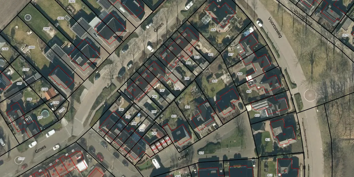 Gebruik de zoekbalk of klik op een perceel om informatie over het perceel te bekijken.