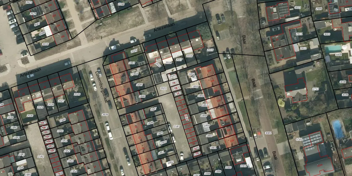Gebruik de zoekbalk of klik op een perceel om informatie over het perceel te bekijken.