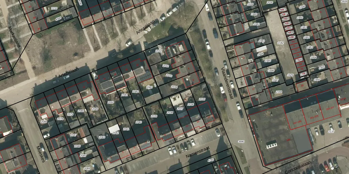 Gebruik de zoekbalk of klik op een perceel om informatie over het perceel te bekijken.