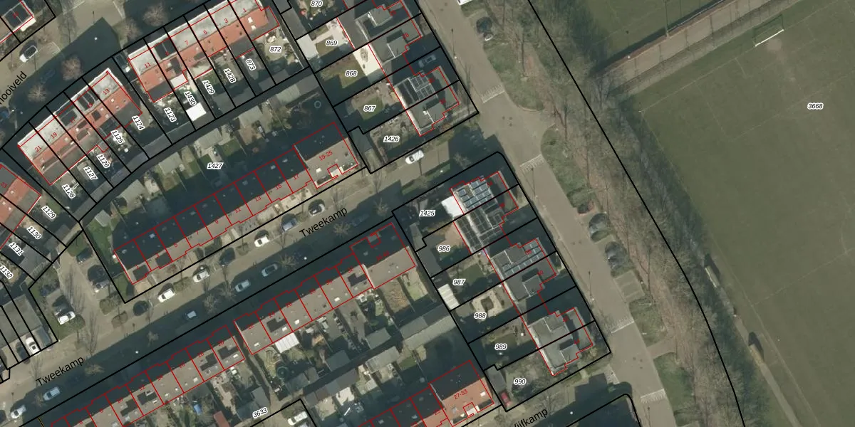 Gebruik de zoekbalk of klik op een perceel om informatie over het perceel te bekijken.
