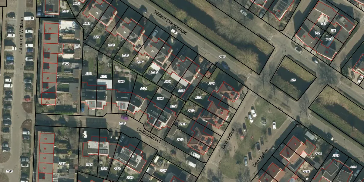 Gebruik de zoekbalk of klik op een perceel om informatie over het perceel te bekijken.