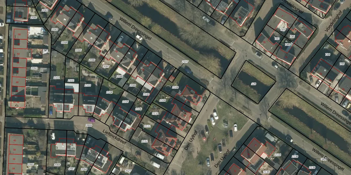 Gebruik de zoekbalk of klik op een perceel om informatie over het perceel te bekijken.