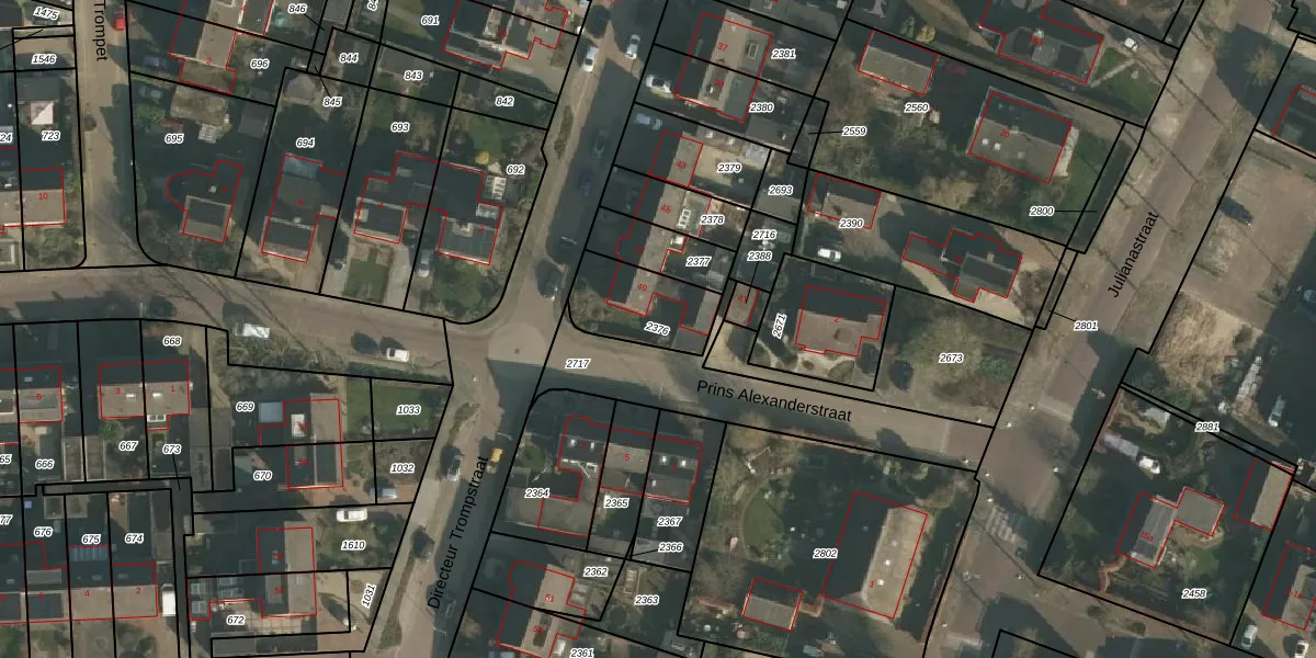 Gebruik de zoekbalk of klik op een perceel om informatie over het perceel te bekijken.