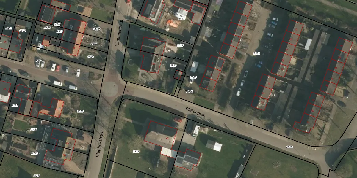 Gebruik de zoekbalk of klik op een perceel om informatie over het perceel te bekijken.