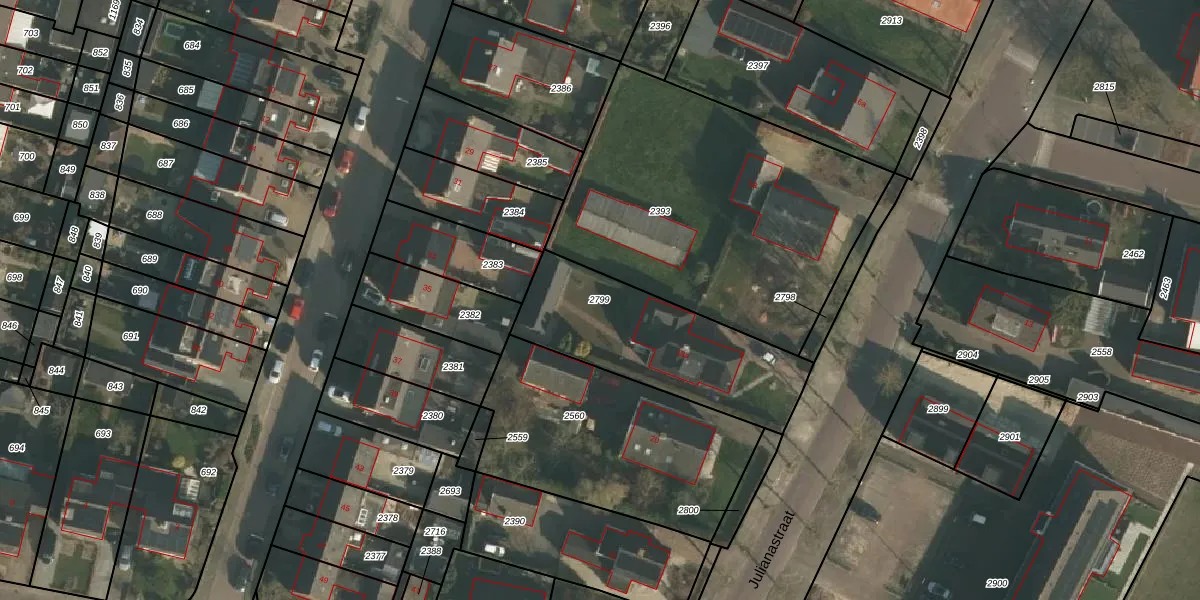 Gebruik de zoekbalk of klik op een perceel om informatie over het perceel te bekijken.