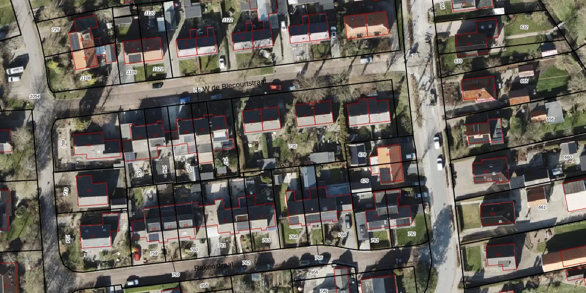 Gebruik de zoekbalk of klik op een perceel om informatie over het perceel te bekijken.