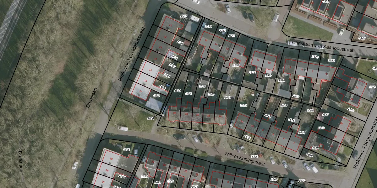 Gebruik de zoekbalk of klik op een perceel om informatie over het perceel te bekijken.