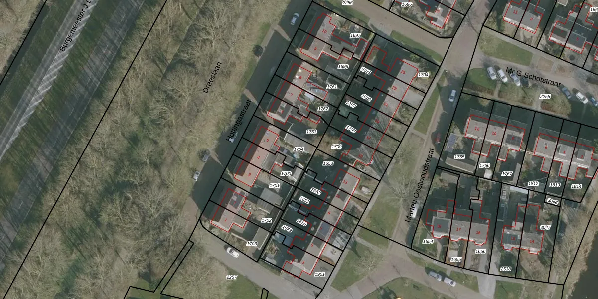 Gebruik de zoekbalk of klik op een perceel om informatie over het perceel te bekijken.