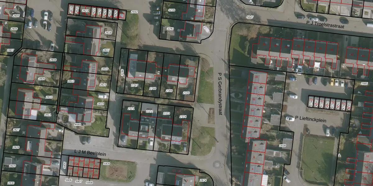 Gebruik de zoekbalk of klik op een perceel om informatie over het perceel te bekijken.