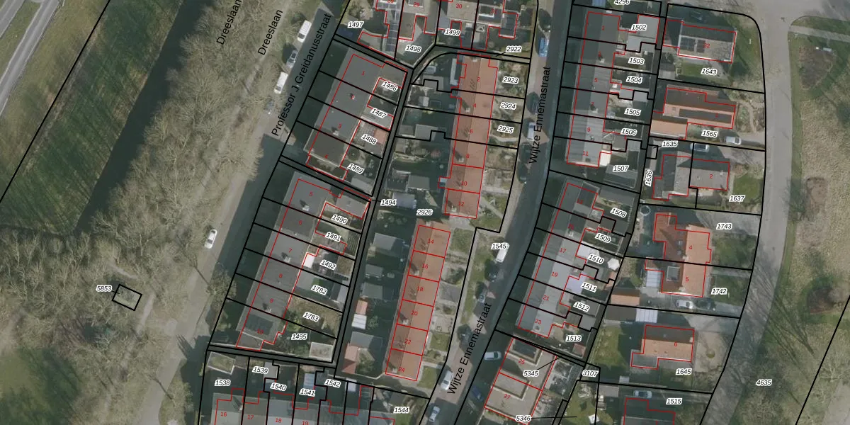 Gebruik de zoekbalk of klik op een perceel om informatie over het perceel te bekijken.