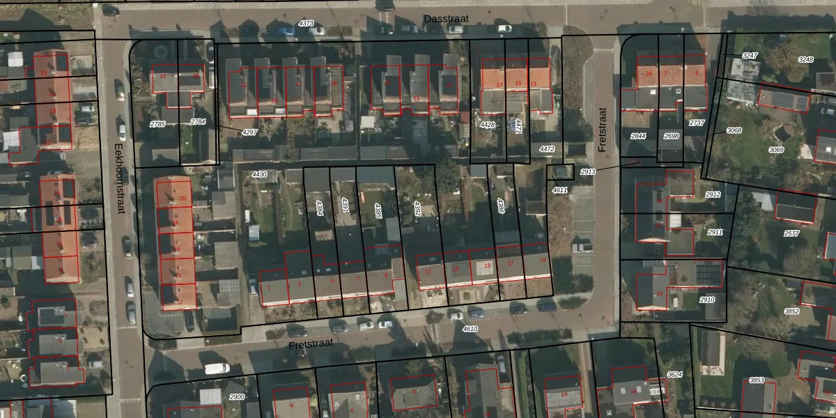 Gebruik de zoekbalk of klik op een perceel om informatie over het perceel te bekijken.