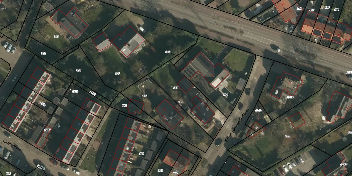 Gebruik de zoekbalk of klik op een perceel om informatie over het perceel te bekijken.