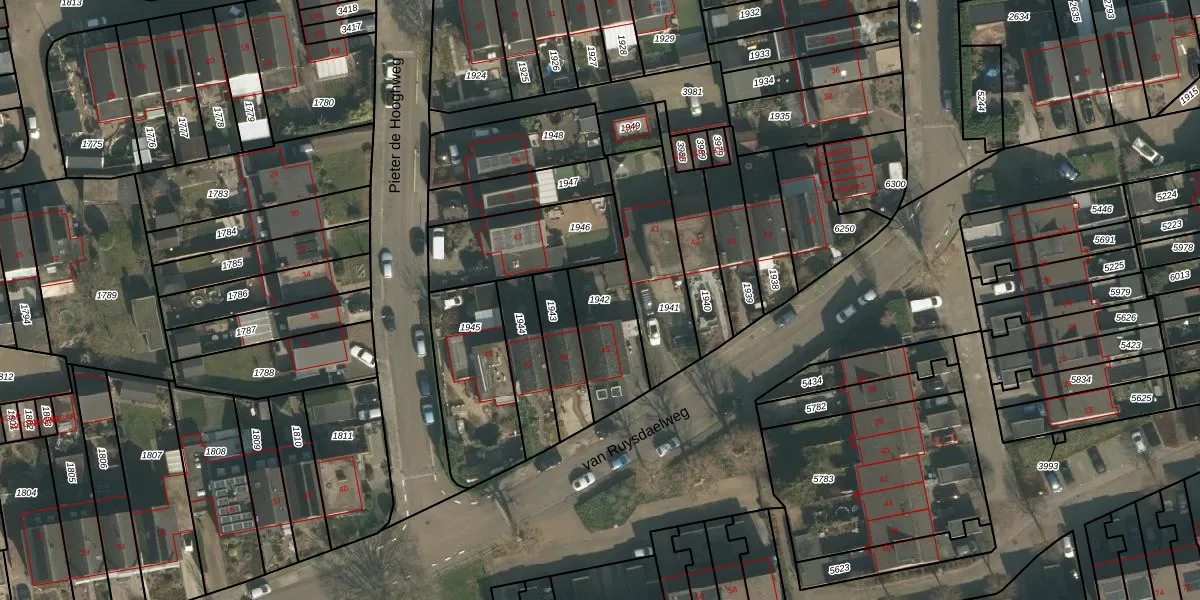 Gebruik de zoekbalk of klik op een perceel om informatie over het perceel te bekijken.