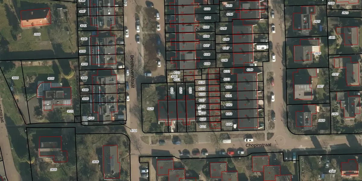 Gebruik de zoekbalk of klik op een perceel om informatie over het perceel te bekijken.