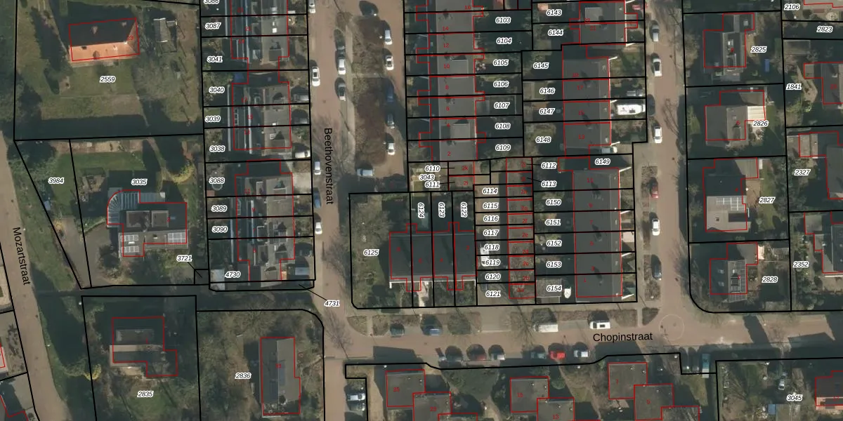 Gebruik de zoekbalk of klik op een perceel om informatie over het perceel te bekijken.