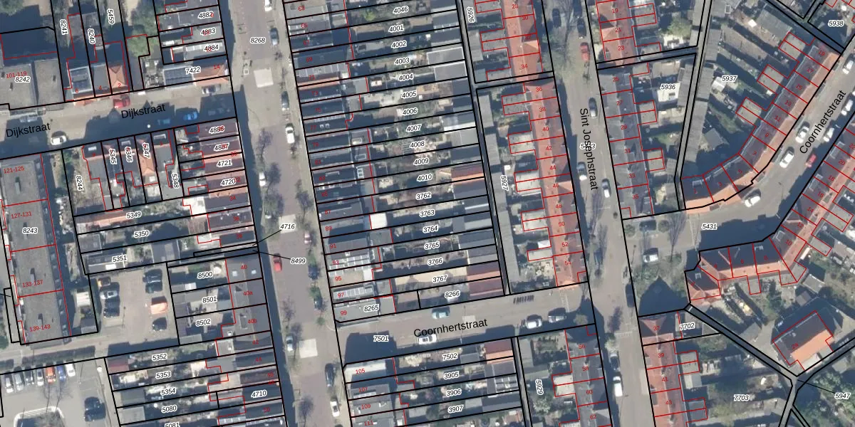 Gebruik de zoekbalk of klik op een perceel om informatie over het perceel te bekijken.