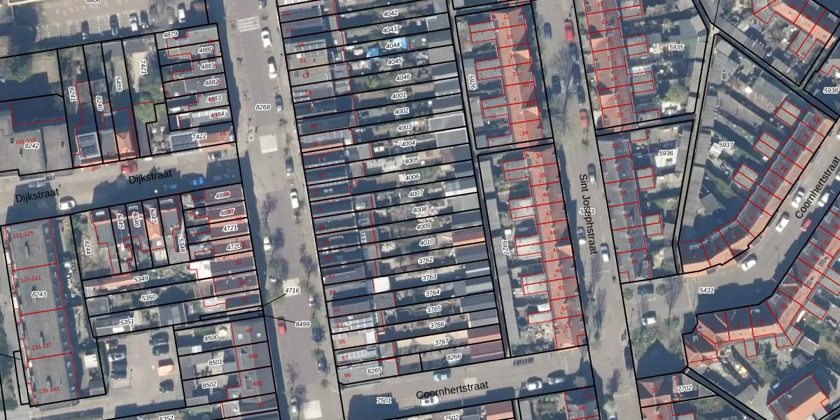 Gebruik de zoekbalk of klik op een perceel om informatie over het perceel te bekijken.