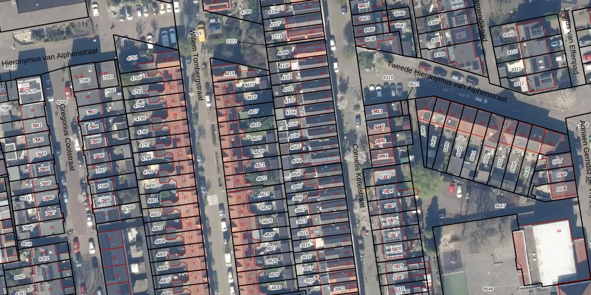 Gebruik de zoekbalk of klik op een perceel om informatie over het perceel te bekijken.