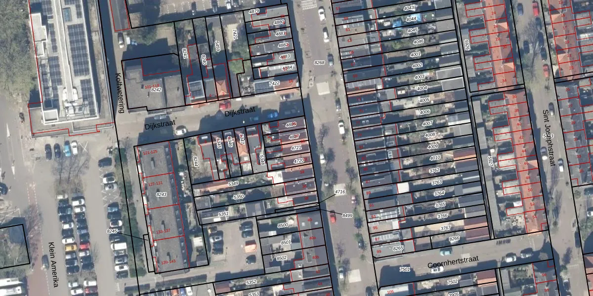 Gebruik de zoekbalk of klik op een perceel om informatie over het perceel te bekijken.