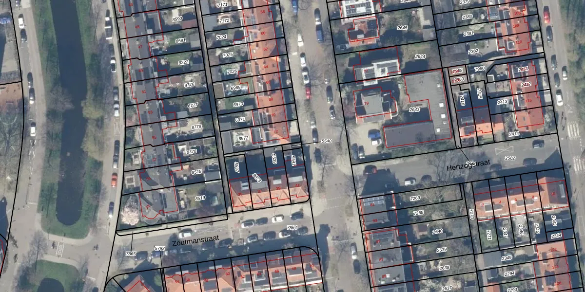 Gebruik de zoekbalk of klik op een perceel om informatie over het perceel te bekijken.