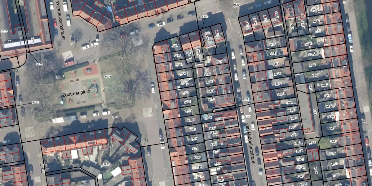 Gebruik de zoekbalk of klik op een perceel om informatie over het perceel te bekijken.