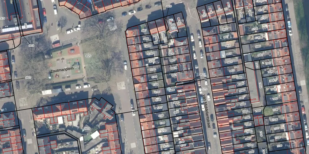 Gebruik de zoekbalk of klik op een perceel om informatie over het perceel te bekijken.