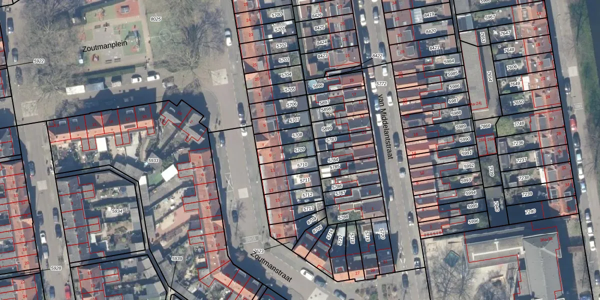 Gebruik de zoekbalk of klik op een perceel om informatie over het perceel te bekijken.