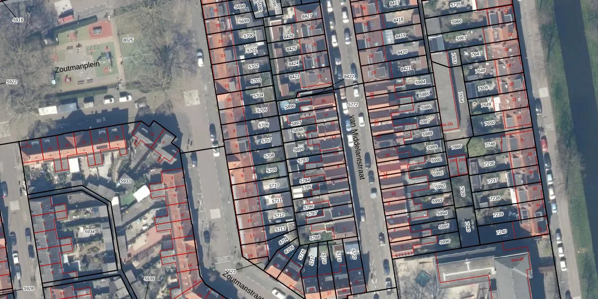 Gebruik de zoekbalk of klik op een perceel om informatie over het perceel te bekijken.