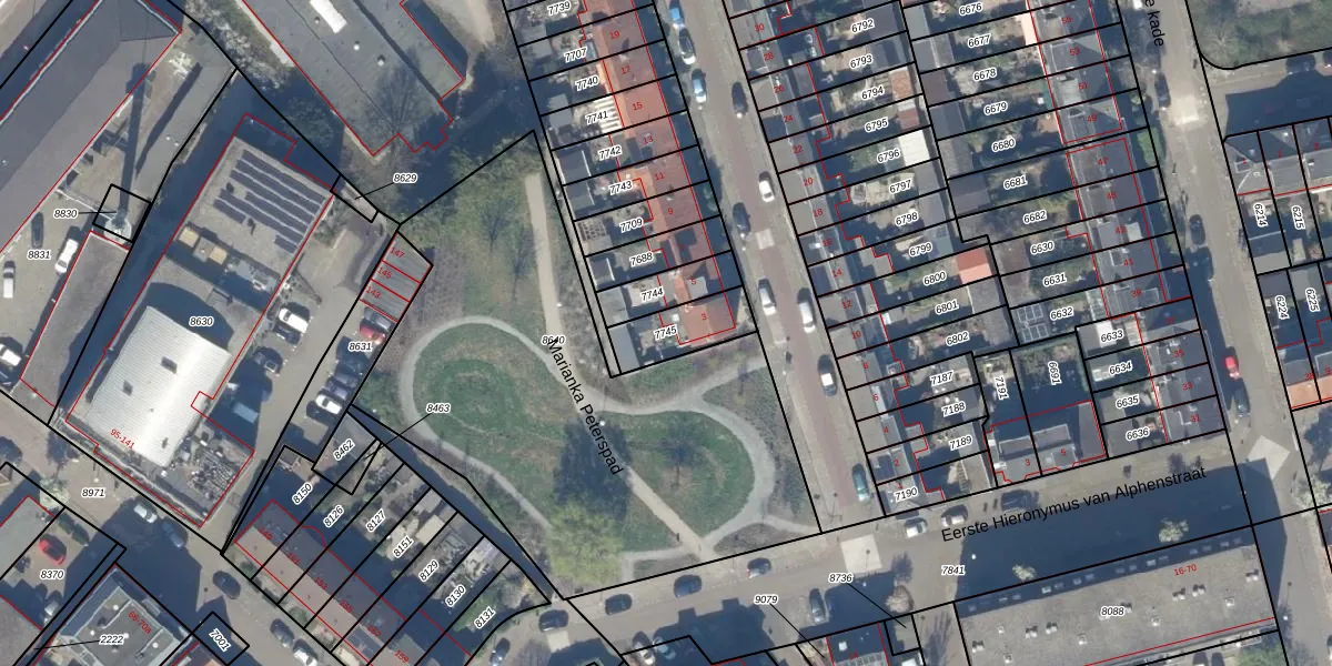 Gebruik de zoekbalk of klik op een perceel om informatie over het perceel te bekijken.