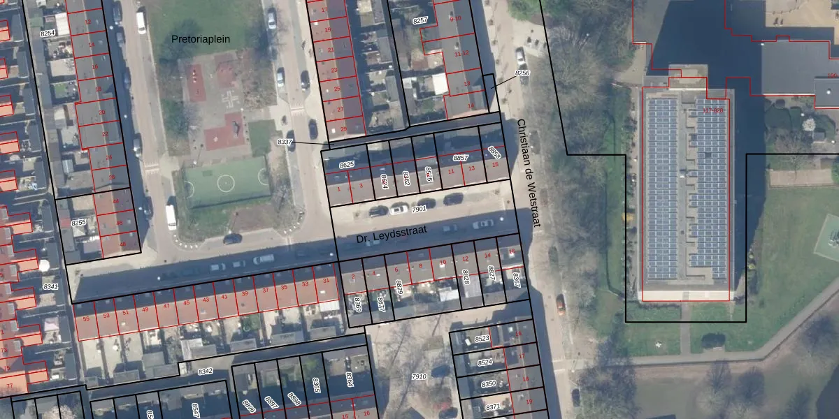 Gebruik de zoekbalk of klik op een perceel om informatie over het perceel te bekijken.