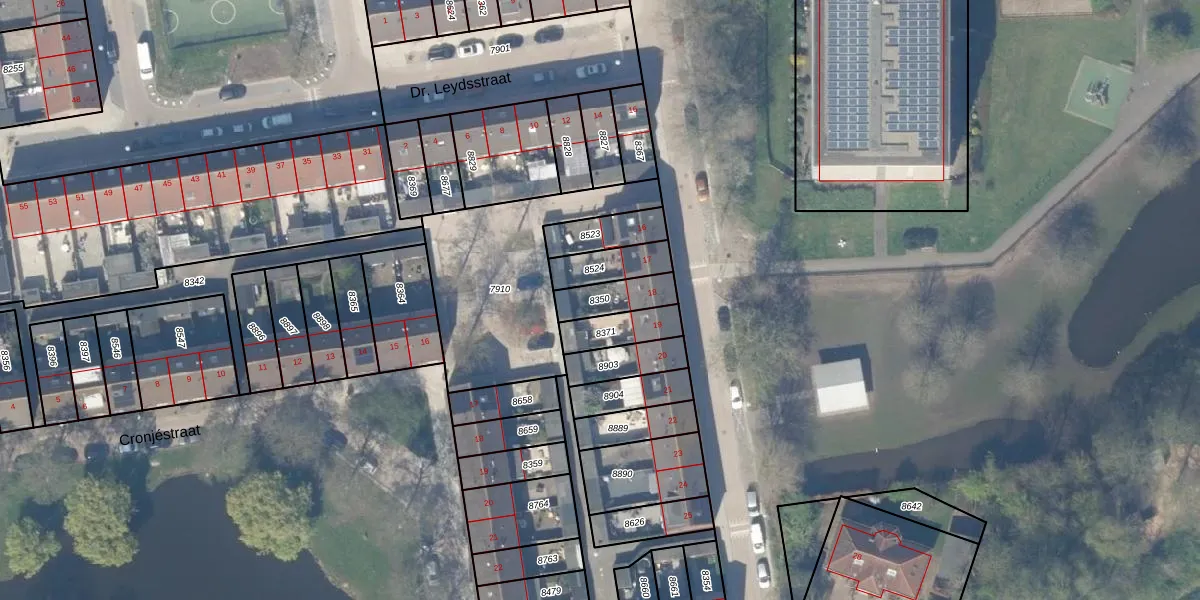 Gebruik de zoekbalk of klik op een perceel om informatie over het perceel te bekijken.