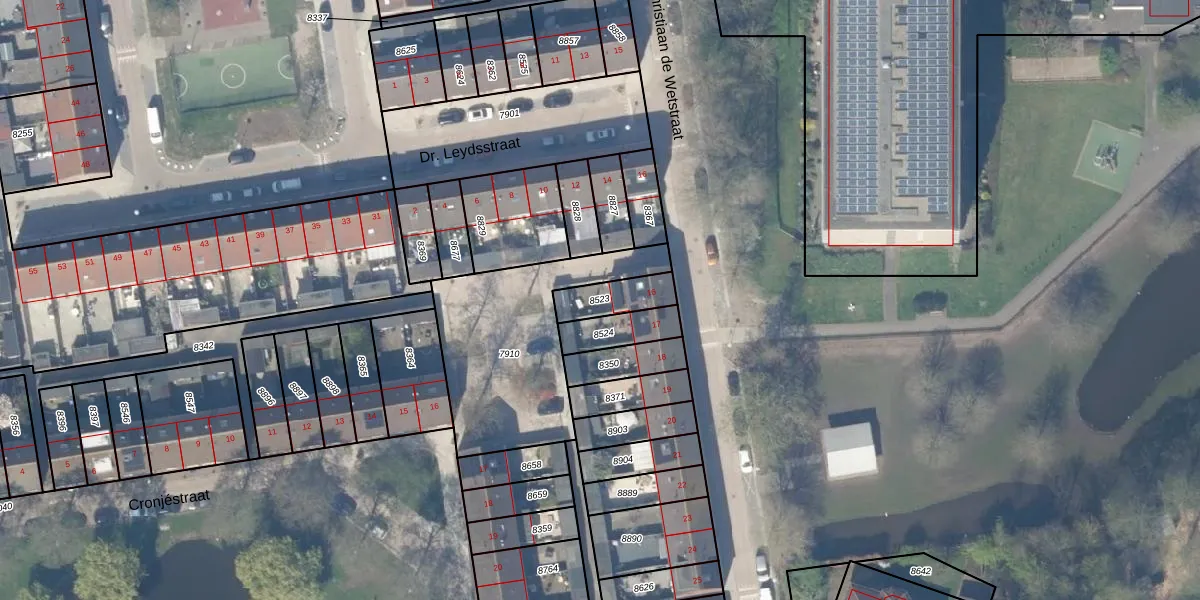 Gebruik de zoekbalk of klik op een perceel om informatie over het perceel te bekijken.