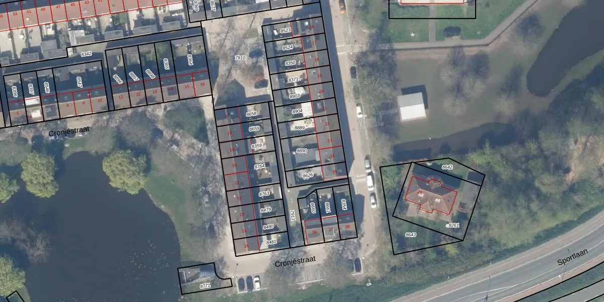 Gebruik de zoekbalk of klik op een perceel om informatie over het perceel te bekijken.