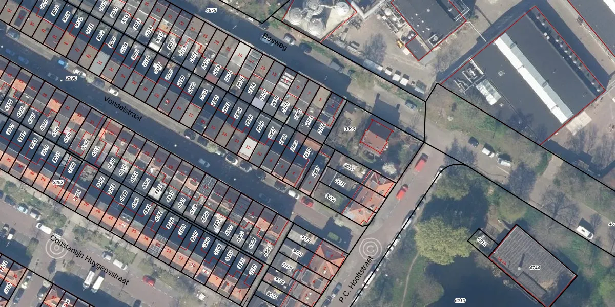 Gebruik de zoekbalk of klik op een perceel om informatie over het perceel te bekijken.