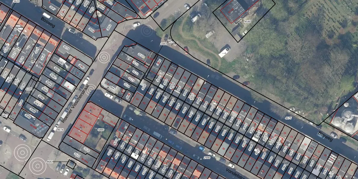 Gebruik de zoekbalk of klik op een perceel om informatie over het perceel te bekijken.