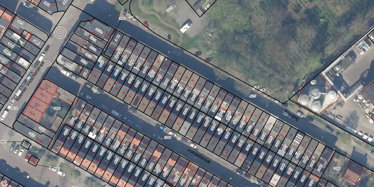 Gebruik de zoekbalk of klik op een perceel om informatie over het perceel te bekijken.