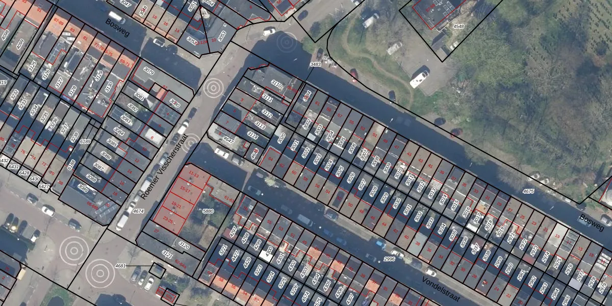 Gebruik de zoekbalk of klik op een perceel om informatie over het perceel te bekijken.
