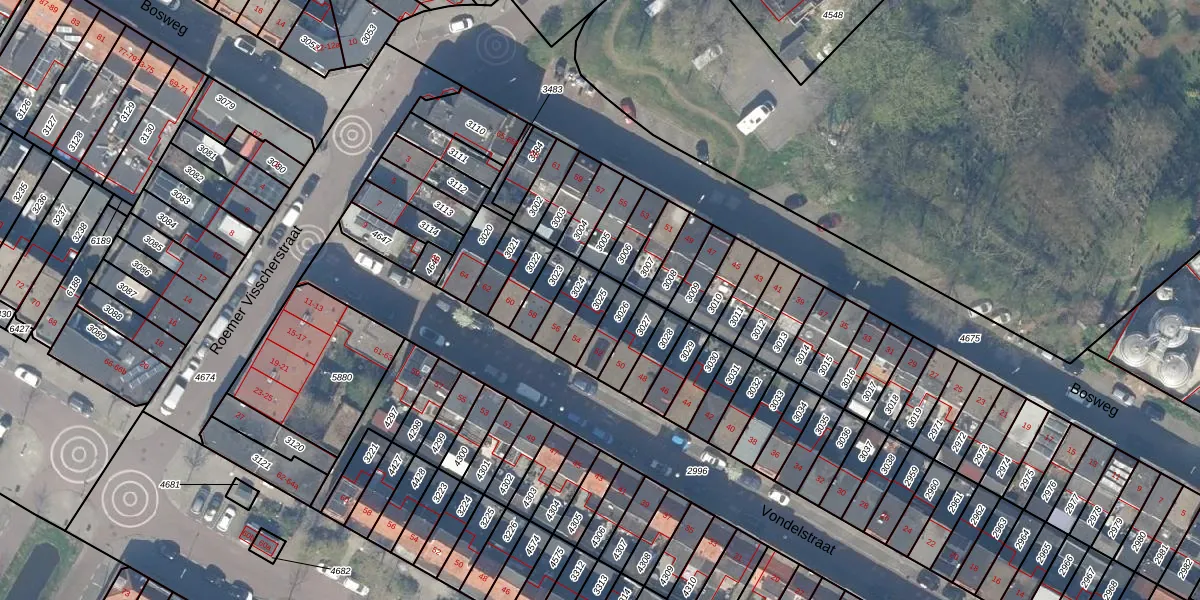 Gebruik de zoekbalk of klik op een perceel om informatie over het perceel te bekijken.