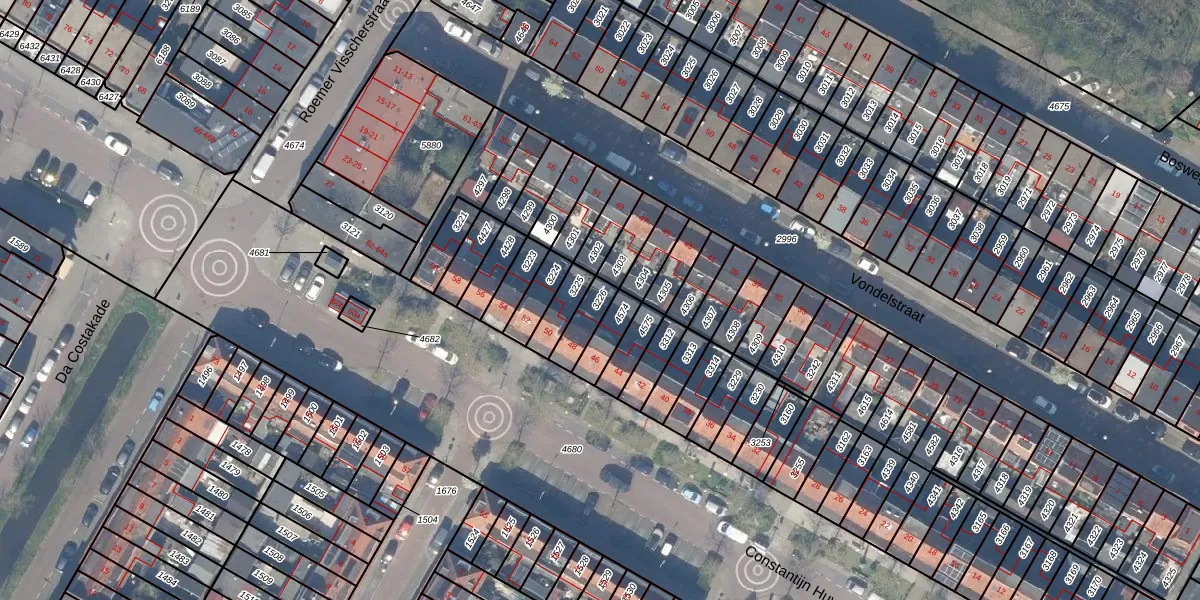 Gebruik de zoekbalk of klik op een perceel om informatie over het perceel te bekijken.