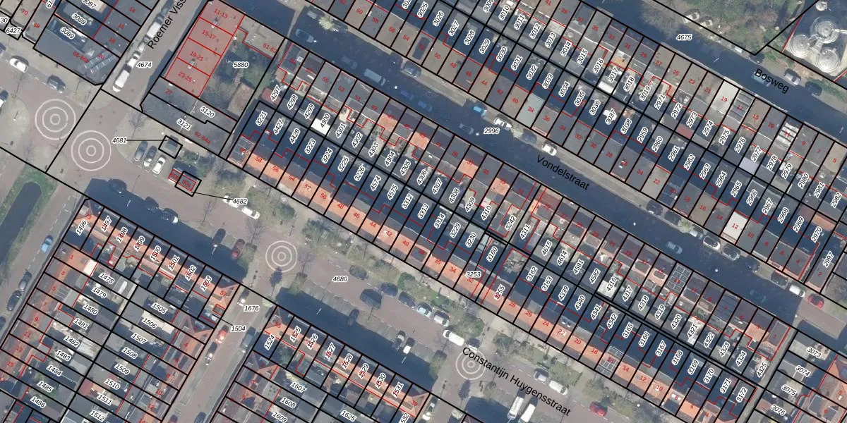 Gebruik de zoekbalk of klik op een perceel om informatie over het perceel te bekijken.