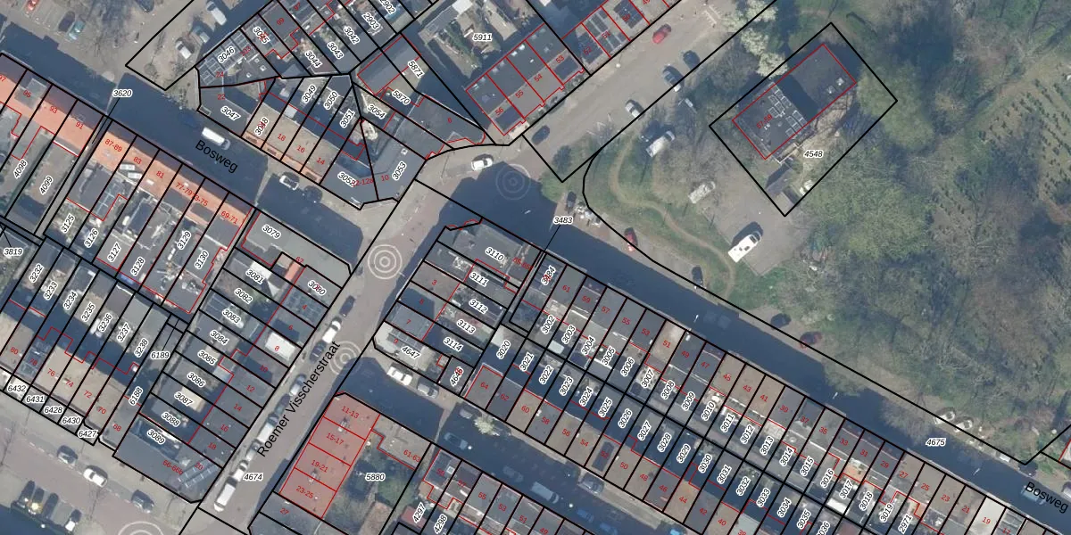 Gebruik de zoekbalk of klik op een perceel om informatie over het perceel te bekijken.