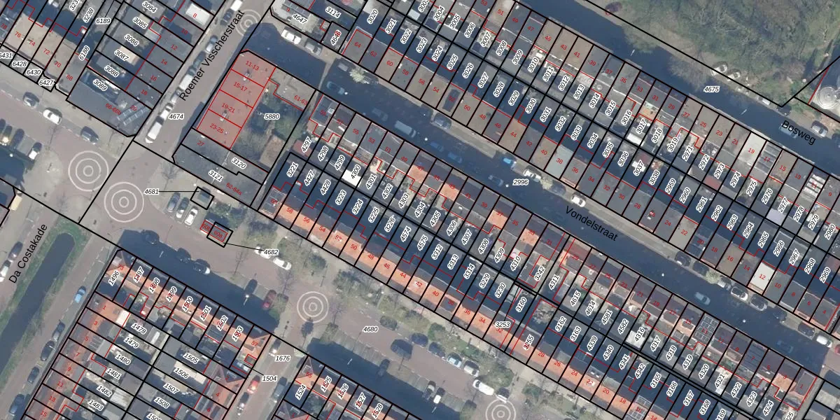 Gebruik de zoekbalk of klik op een perceel om informatie over het perceel te bekijken.