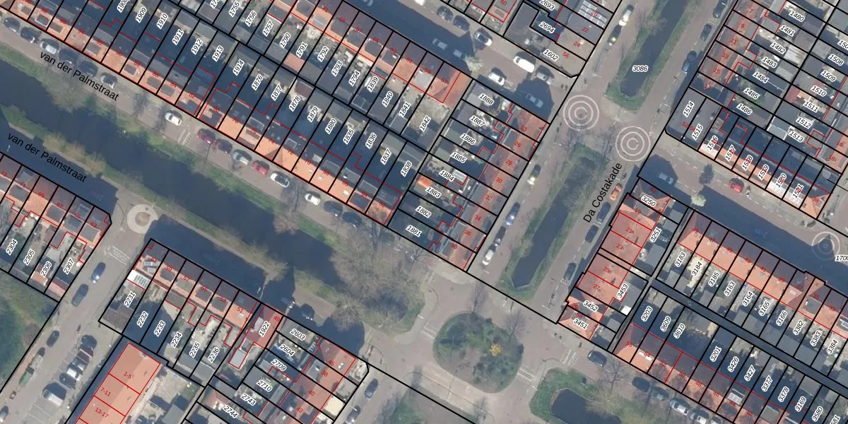 Gebruik de zoekbalk of klik op een perceel om informatie over het perceel te bekijken.