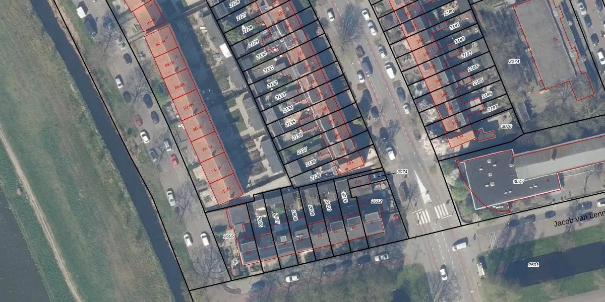Gebruik de zoekbalk of klik op een perceel om informatie over het perceel te bekijken.