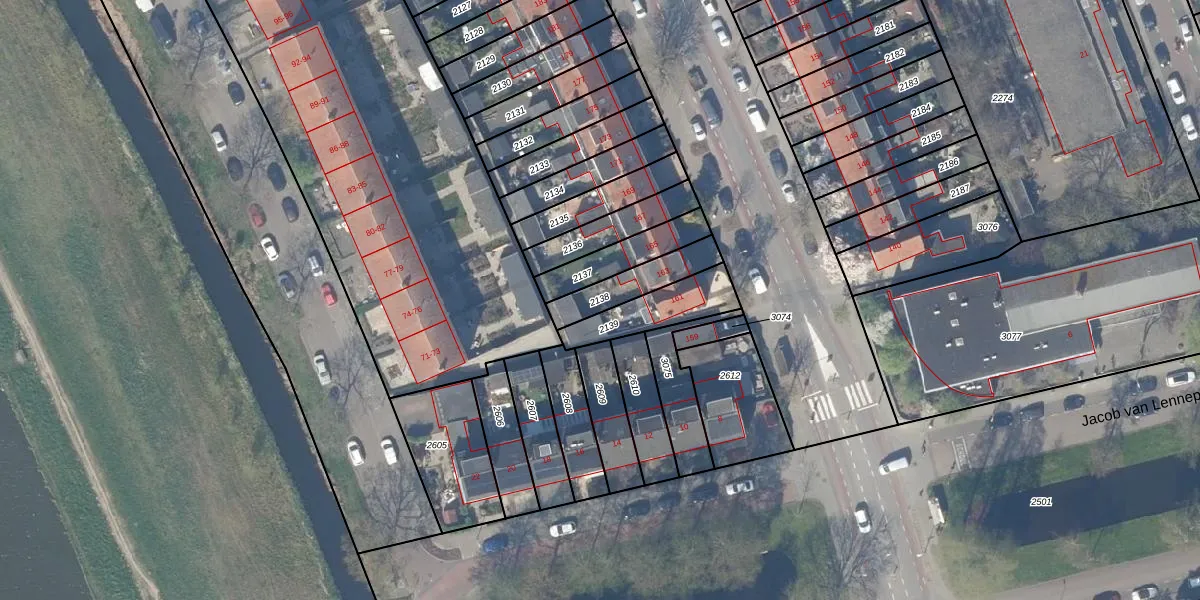 Gebruik de zoekbalk of klik op een perceel om informatie over het perceel te bekijken.