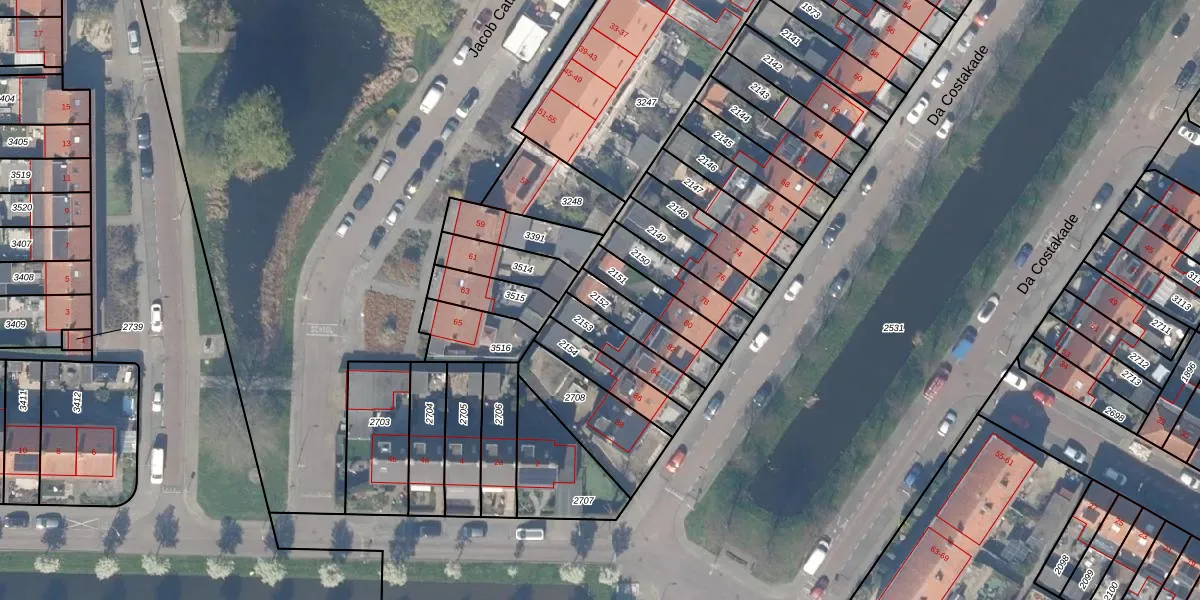 Gebruik de zoekbalk of klik op een perceel om informatie over het perceel te bekijken.