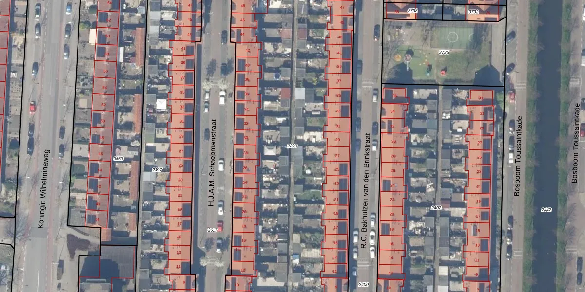 Gebruik de zoekbalk of klik op een perceel om informatie over het perceel te bekijken.